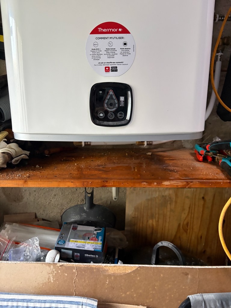 Plus d’eau chaude en attendant une intervention, que j’espère urgente dès lundi, de mon plombier, qui en est aussi l’installateur.