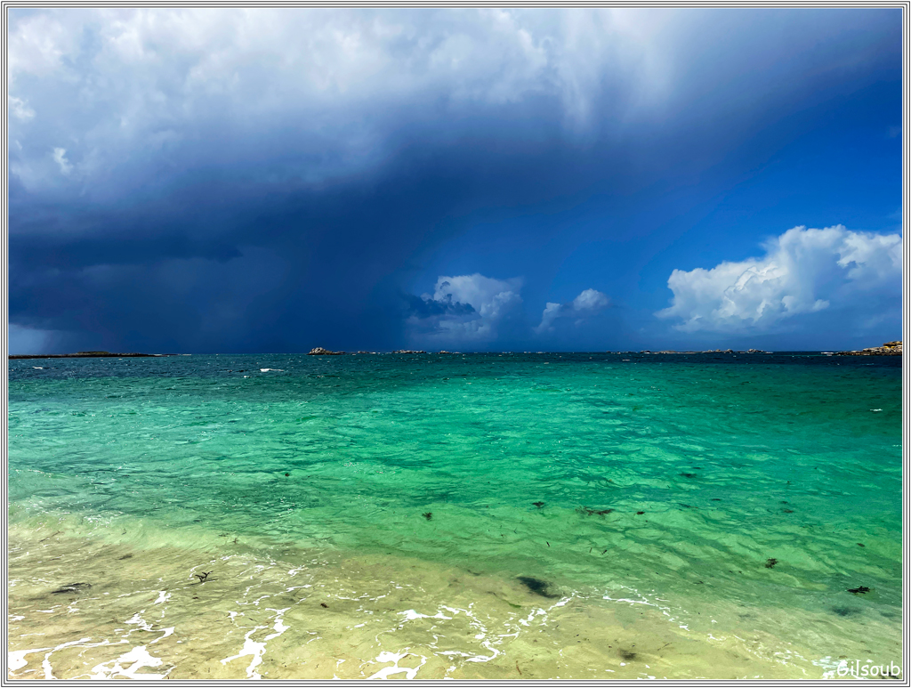 Le jour où j’ai pris cette photo, je me suis amusé à regarder sur le site de la météo marine la température de l’eau à la plage de Pors Carn. Elle était de 14 degrés !