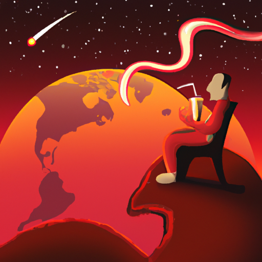 « Photo d’un homme sur la lune qui boit un cocktail en admirant un coucher de terre. »